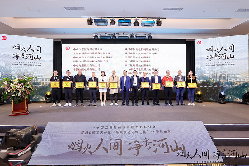 2023年11月28日,以“煙火人間,凈秀河山”為主題的中國五金制品協會吸油煙機分會換屆&技術大會暨“高效凈化環保之星”10周年慶典在浙江杭州成功舉辦。中國五金制品協會理事長張東立,專職副理事長孟凡波,中國五金制品協會副理事長、中國五金制品協會吸油煙機分會會長、方太集團董事長兼總裁茅忠群,中國五金制品協會副理事長單位、中國五金制品協會吸油煙機分會副會長單位、老板集團總裁趙繼宏,中國五金制品協會副理事長單位、中國五金制品協會吸油煙機分會副會長單位、海爾智家副總裁、海爾智家廚電產業總經理吳勇,中國五金制品協會副理事長單位、中國五金制品協會吸油煙機分會副會長、嵊州廚具行業協會會長、浙江億田智能廚電股份有限公司董事長孫偉勇,中國五金制品協會吸油煙機分會副會長、杭州德意電器股份有限公司董事長高德康,火星人廚具股份有限公司董事長兼總經理黃衛斌,浙江萬事興電器有限公司董事長王俊,以及來自副會長單位、理事單位、會員單位等近90家企業140余名嘉賓代表出席會議。同時,本次活動邀請到中國日用五金技術開發中心檢驗室主任金鋒,西安交通大學教授劉小民,奧維云網總裁郭梅德,中國科學院過程工程研究所研究員李雙德,創研智能集團董事長張人斌分別作主題分享。